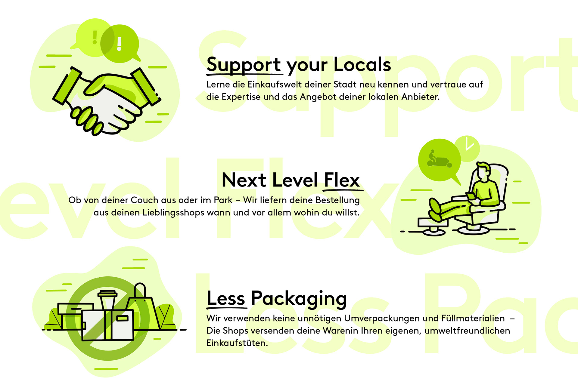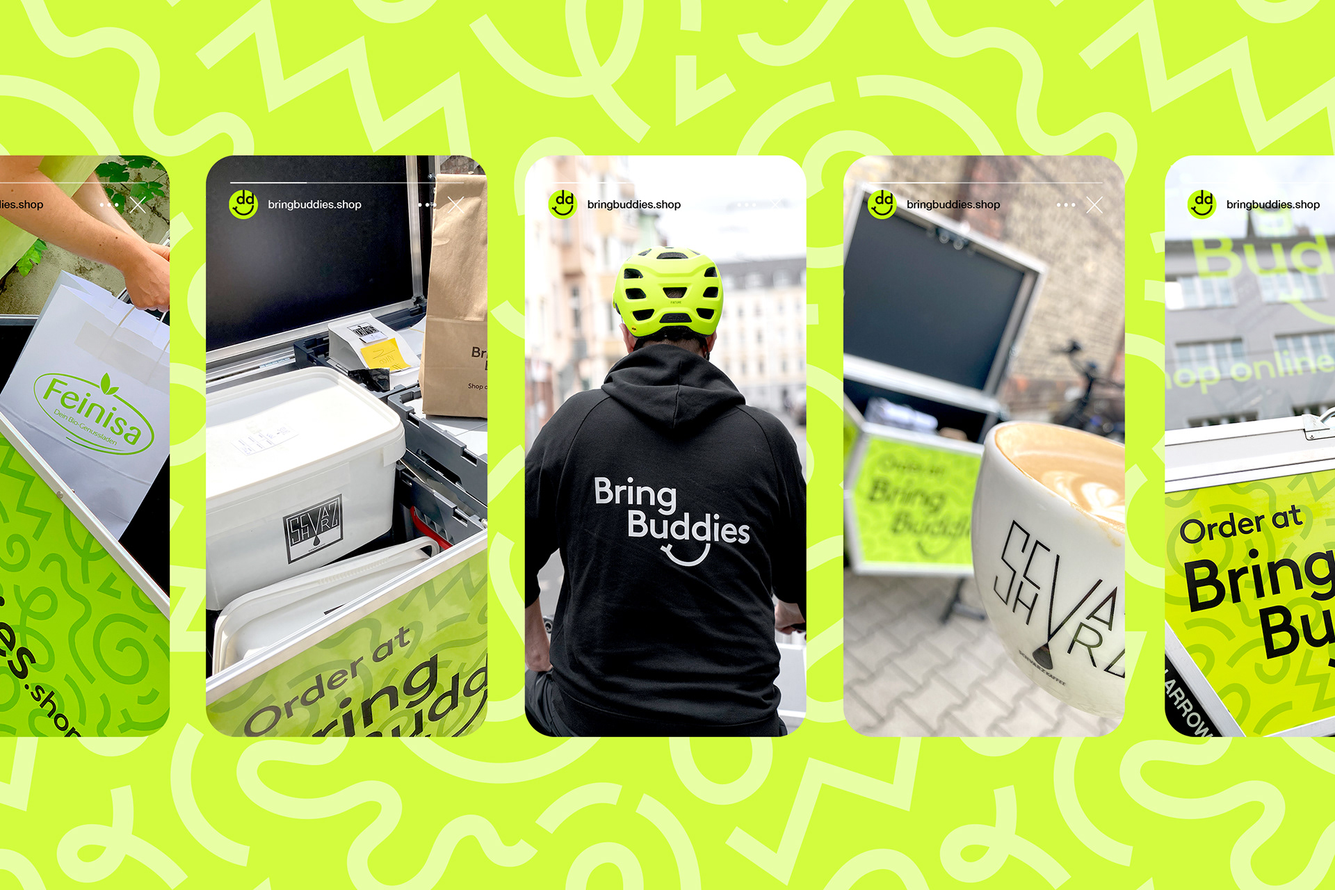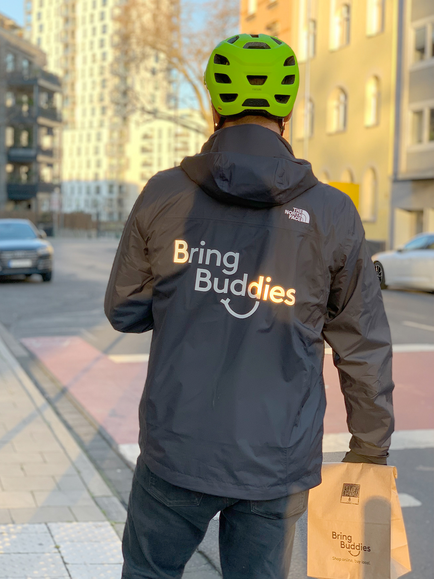 The BringBuddies project was launched by Akre.Studio in 2019, at the beginning of the Corona crisis, to temporarily support local retail and offer people the opportunity to have everyday essentials such as coffee, flowers and goods from local online shops delivered to their homes. From this idea, the concept of a hyperlocal last-mile delivery service grew, which, as an independent start-up, was to raise the shopping experience within the city to a new level in the long term. Following our motto "Shop online, buy local." we wanted to create a collective retail network whose products would be ordered via an online marketplace platform and delivered to the end consumer via e-bikes within the shortest possible time. After initially receiving extremely positive feedback from shops and customers, BringBuddies was unfortunately not able to prevail against the rapid rise of numerous well-known competitors. So we went back to our core business of Akre.Studio and today we see BringBuddies as an exciting and versatile life experience.
